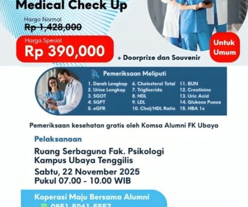Medical Check Up IKA Ubaya dan Koperasi Maju Bersama Alumni bekerjasama dengan Laboratorium Gleneagles kembali hadir.